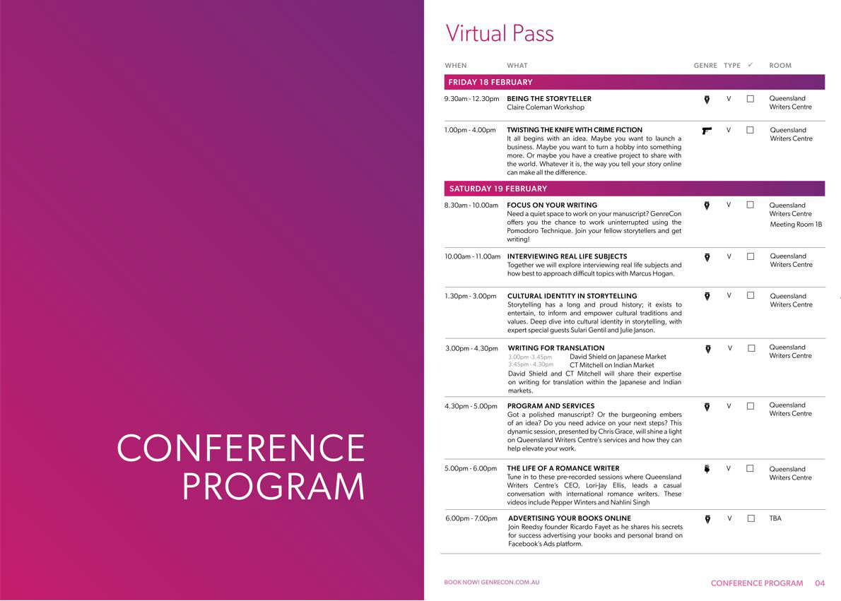 I completed an 100 hour internship at the Queensland Writers Centre. As my first internship and working with the Queensland Writers Centre, my knowledge and understanding of working within the graphic design industry of a company expanded greatly. I got to experience working in a supportive and fast paced working environment, creating designs and improving my technical and social skills.